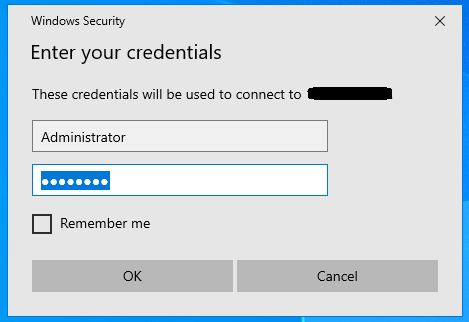 - Paste the password into the "Password" field in the Remote Desktop Connection window.